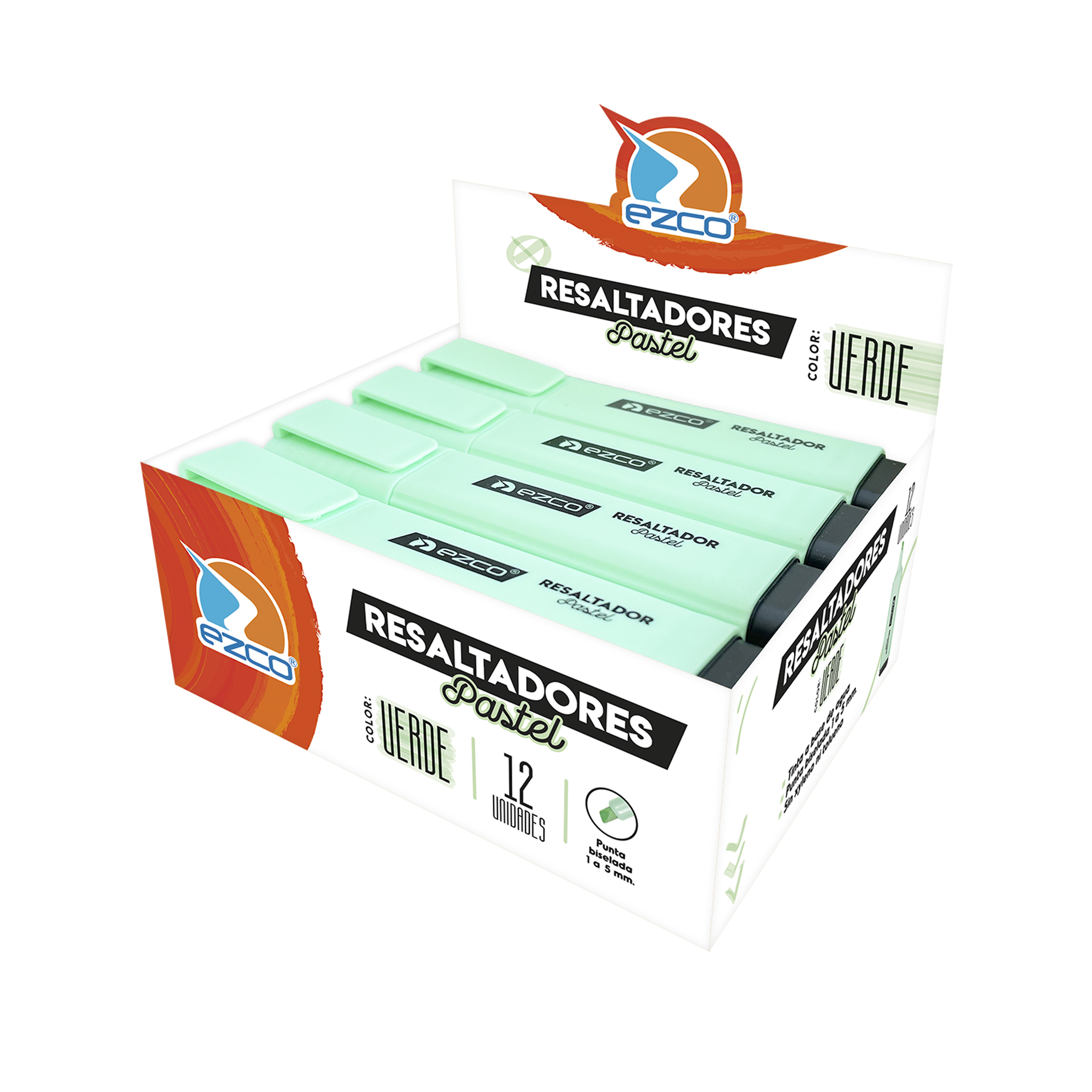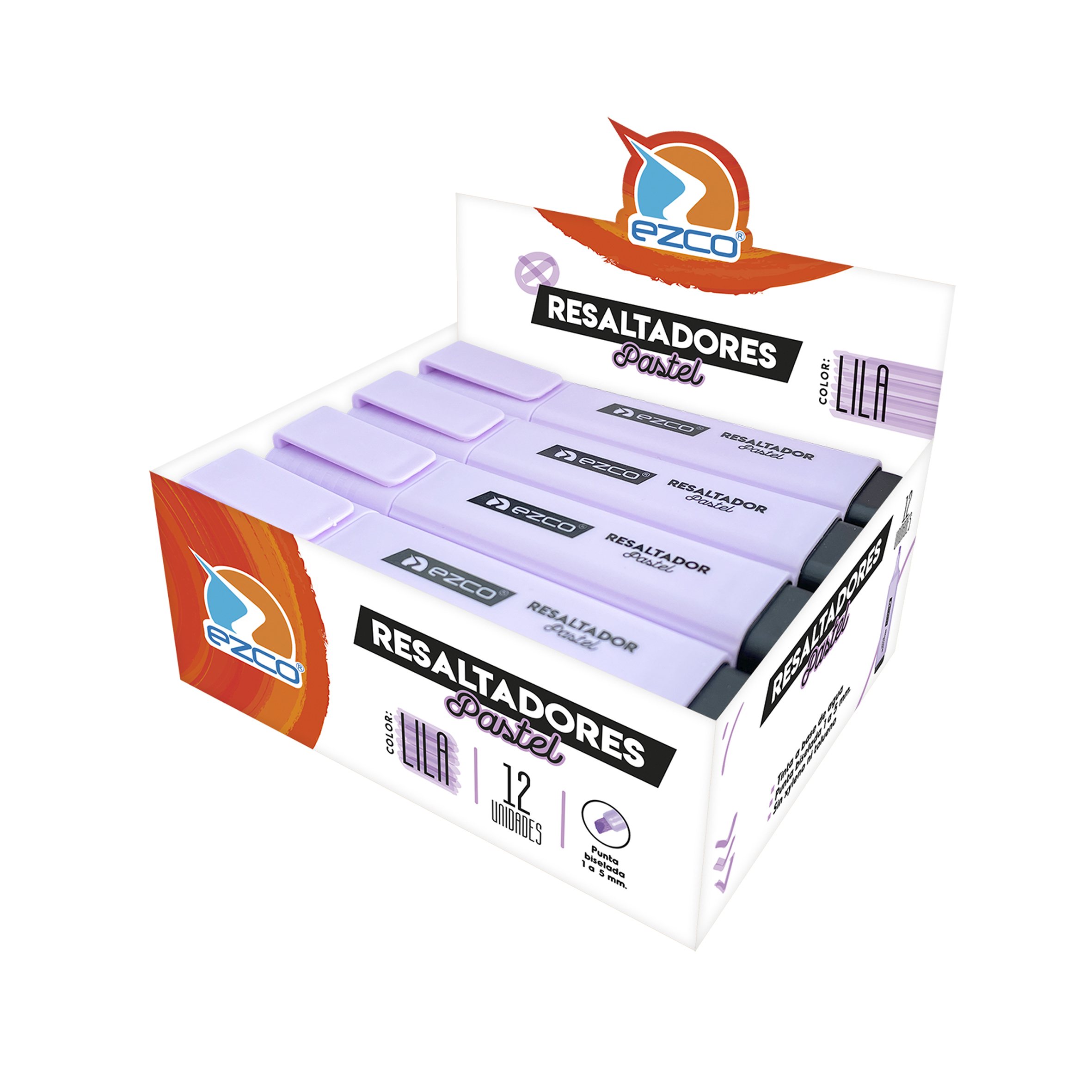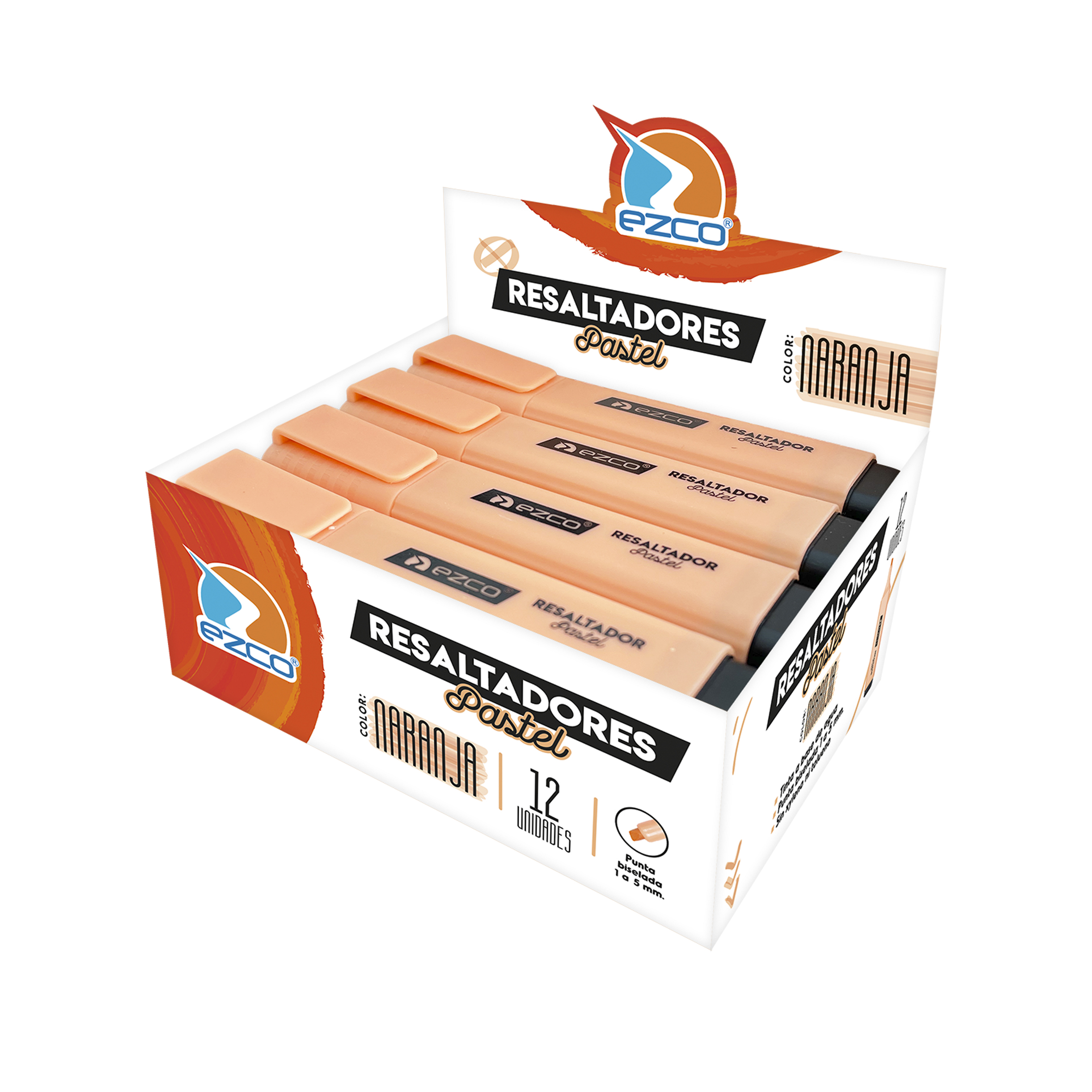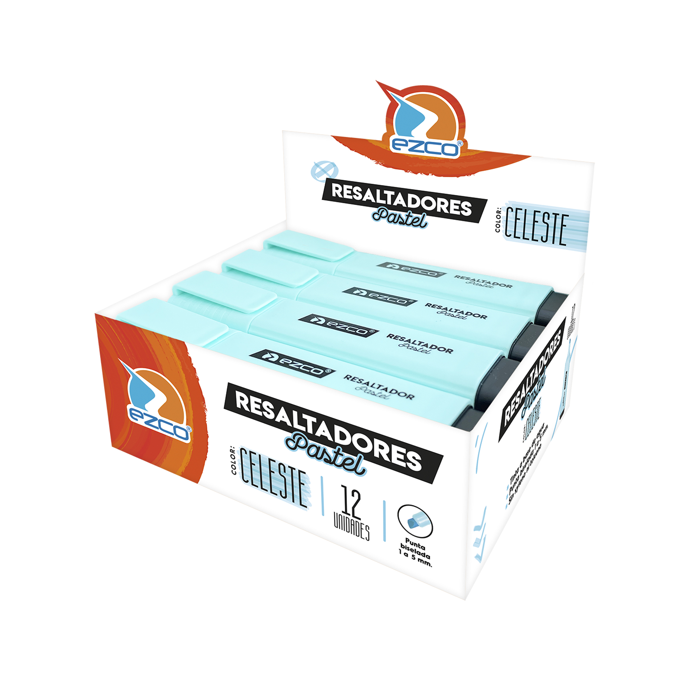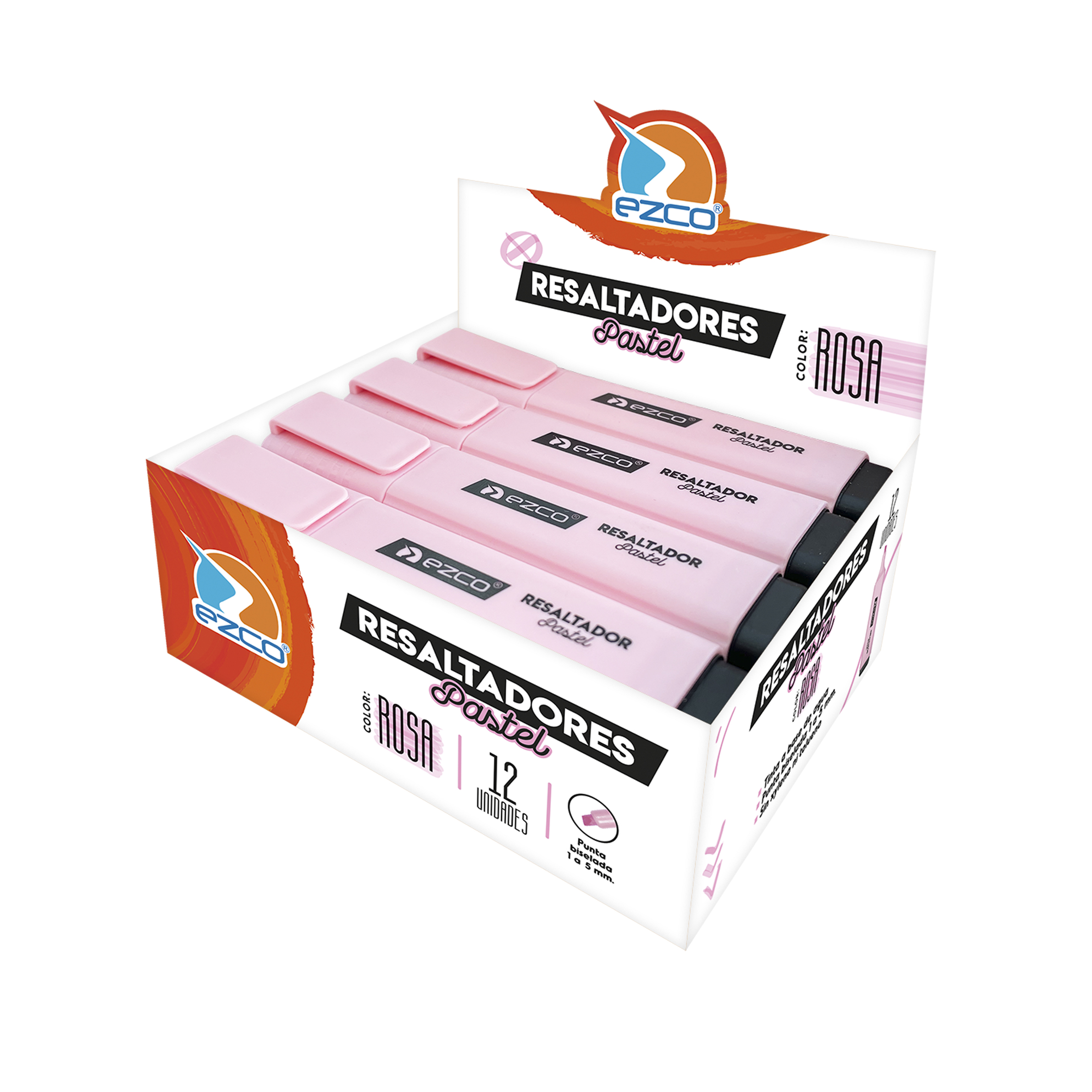 Resaltadores pastel para uso escolar y oficina, punta biselada de 3,9 mm, cuerpo chato pastel. Colores disponibles: amarillo, celeste, lila, naranja, verde y rosa pastel.